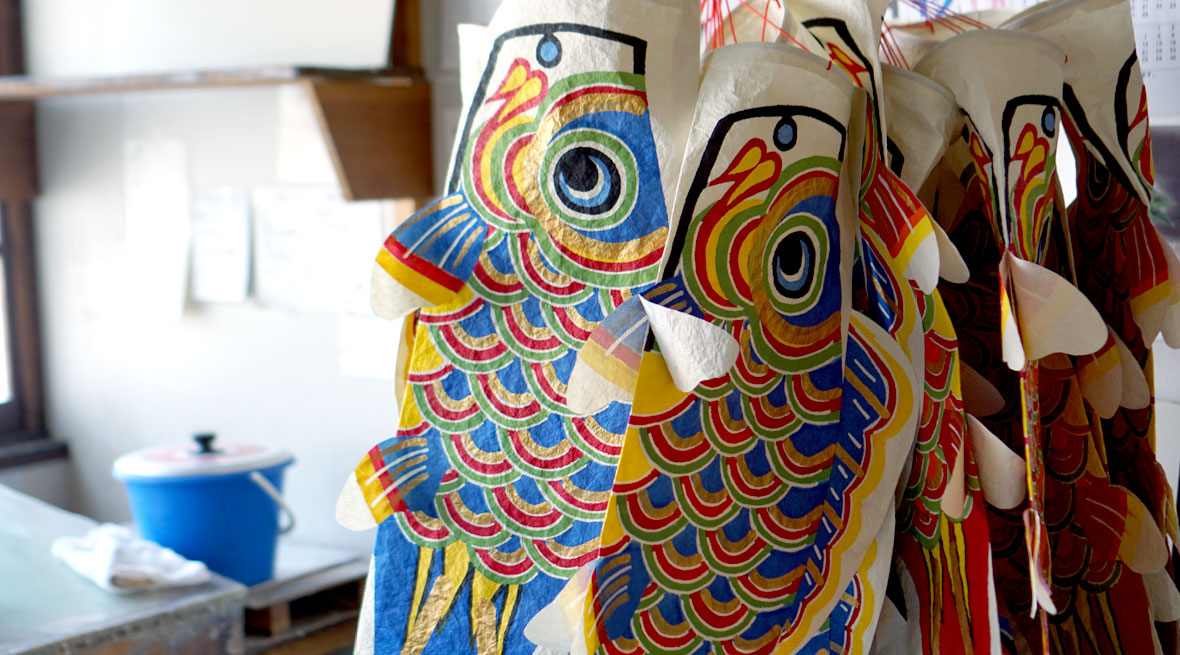 使い込んでいく程にやわらかくなり、艶が出て味わい深くなっていく、型染め和紙の鯉のぼり。