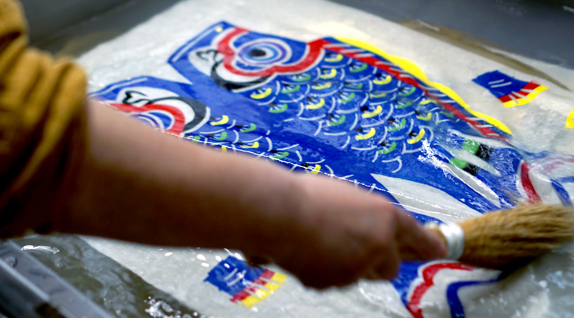 出来上がった平面の和紙を、鯉のぼりの形に仕立てて、ようやくゴールへ。