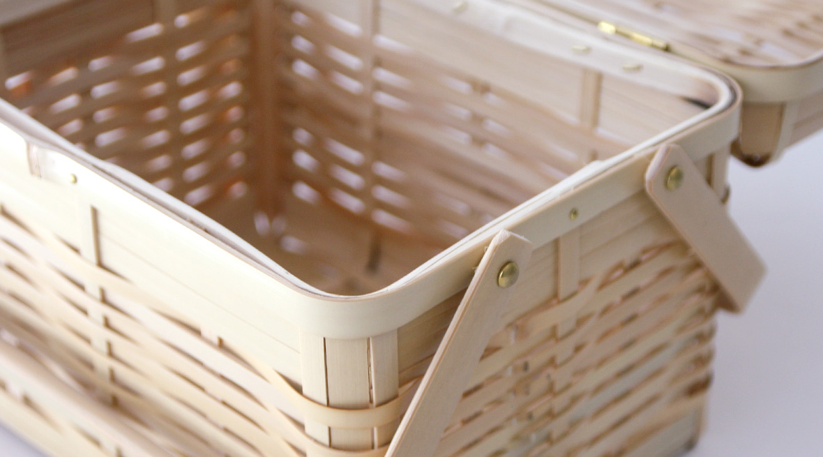 - 細部まで丁寧な作りで、天然素材の竹の美しさが際立ちます。裁縫箱や薬箱、また、ピクニック気分でおでかけの際のランチボックスなどとしても重宝します。 Natural beauty of bamboo is well expressed because of Masashi’s great attention to detail in the process of making works. This can be used as a picnic basket, medicine case and sewing box.